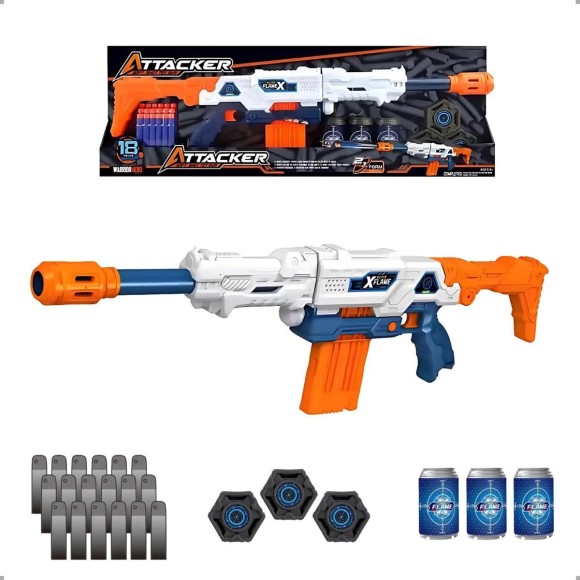 Leve a ação a um novo nível com a Pistola Elétrica de Dardos estilo fuzil. Este brinquedo empolgante transforma qualquer brincadeira em uma missão de aventura, com visual imponente, funcionalidade elétrica e diversos acessórios para garantir diversão por horas.