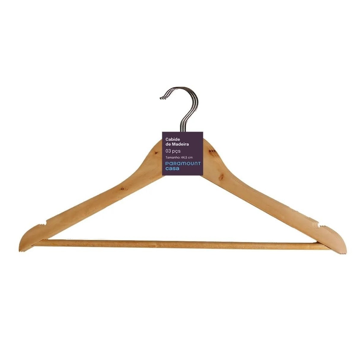 Kit Cabide de Madeira com 3 Peças 44,5x23x1,2cm Paramount